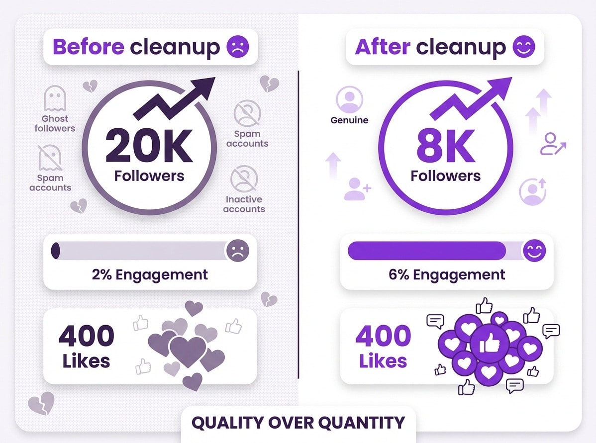 Audit your followers. Remove the ghosts. Watch your engagement improve. It works.